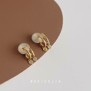 高级感~镀真金蚊香盘耳夹!流苏心形时尚无耳洞耳环耳饰 工厂批发