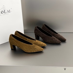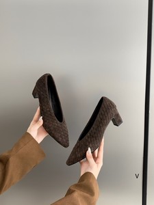 欧洲站女鞋25秋时尚气质踩跟胎牛绒编织皮尖头舒适浅口小低跟单鞋