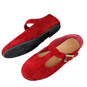 复古真皮平底浅口单鞋女2025春秋新款懒人一脚蹬丁字扣带玛丽珍鞋