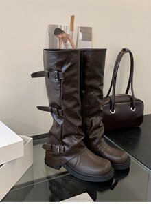 马丁靴短靴女2025秋冬女靴新款粗跟靴子厚底裤管靴中筒西部骑士靴