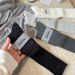 小腿袜子女2025秋季新款纯色抽条堆堆袜韩系百搭灰色袜子配小皮鞋