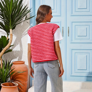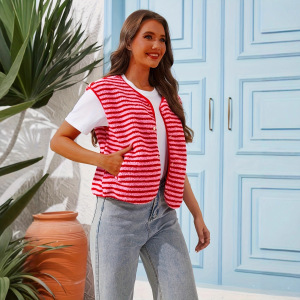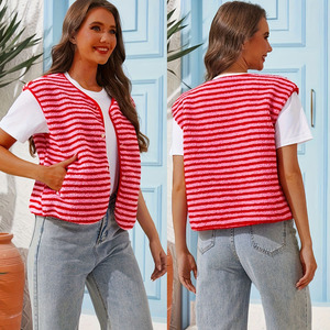2025新品上市跨境速卖通女士外套马甲春秋随机条纹纽扣开衫马甲