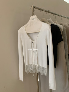 imiss 纯欲!绝美蕾丝拼接假两件2025秋季女舒适新款系带针织开衫