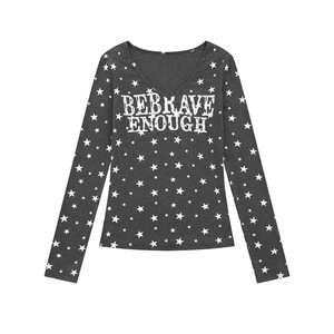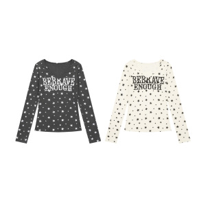 Fudge Pink 25秋季New美式复古辣妹撞色星星印花长袖T恤