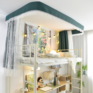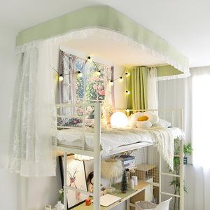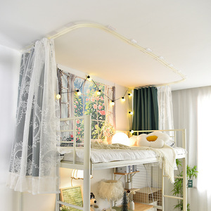 学生宿舍上铺U型双轨道免打孔黏贴床帘 环保无涂层强遮光床幔纱帐