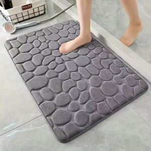 浴室地垫鹅卵石压花洗澡间防滑速干脚垫珊瑚绒地毯家用厕所门垫子