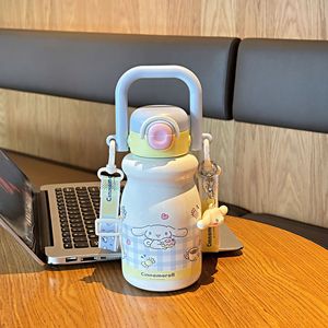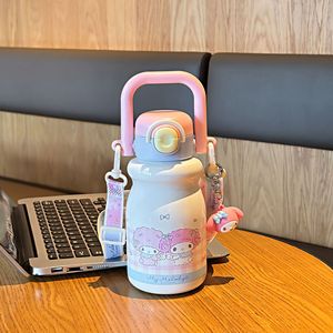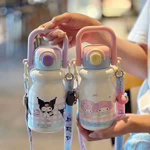 可爱三丽鸥家族系列牛奶一杯双饮保温杯可调节杯绳便捷硅胶吸管杯
