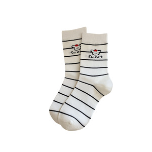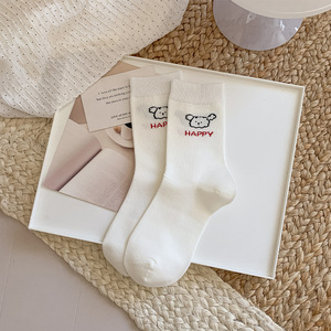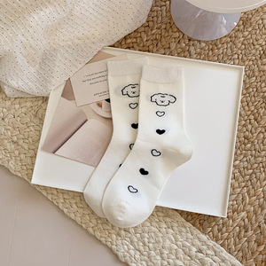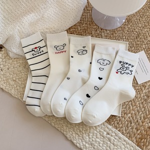 卡通小狗袜子女2025秋季新款白色中筒袜时尚百搭学院风可爱长筒袜