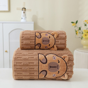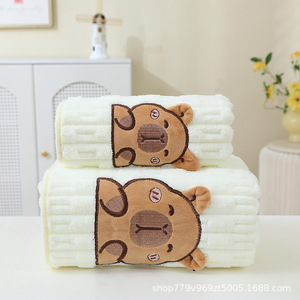 毛巾浴巾套裝两件套可爱卡皮巴拉洗脸毛巾家用卡通洗澡珊瑚绒浴巾