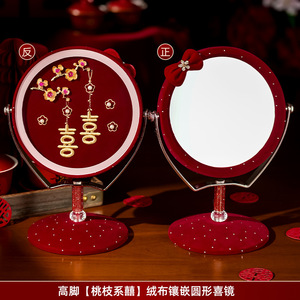 高脚【桃枝系囍】绒布镶嵌圆形喜镜
