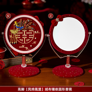 高脚【凤缔凰盟】绒布镶嵌圆形喜镜