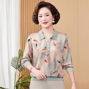 长袖妈妈装秋季女装新款衣服中老年女装印花小衫女中年上衣春秋款