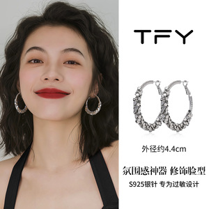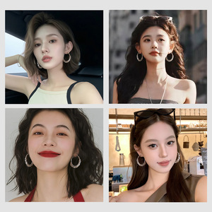 闪钻素圈耳环女2025新款爆款高级感银色大圈圈耳圈方圆脸圆圈夸张