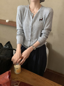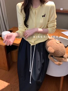 2025早秋新款韩系单排扣宽松腊肠小狗刺绣设计针织开衫百搭上衣女