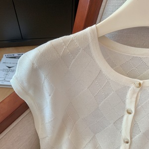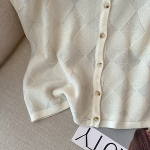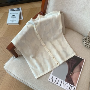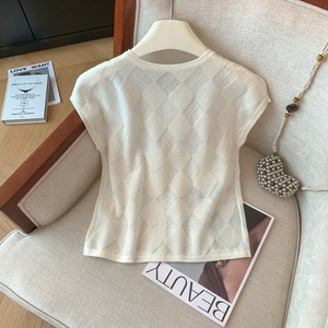 广州十三行高货爆款~早秋季菱格短袖上衣女新款显瘦气质针织开衫