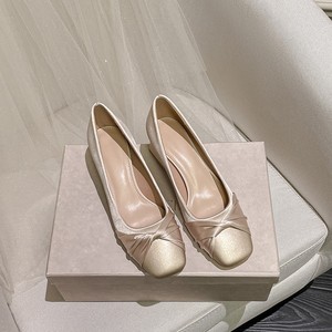 粗跟高跟鞋通勤不累脚方头缎面单鞋女2025秋季新款胖宽脚小香风鞋