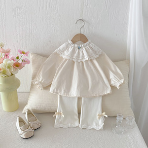 2025秋季女童中小童花边双层领衬衫女宝宝棉软刺绣花边娃娃领T恤