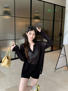 老钱风冰丝薄款polo领罩衫防晒T恤女夏季松弛慵懒感微透长袖上衣