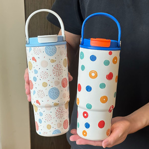 巨无霸大容量夏日水杯女生高颜值吸管杯陶瓷内胆冰霸杯便携保温杯
