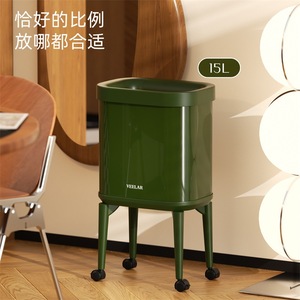 VEELAR免弯腰高脚无盖垃圾桶2025新款按压式家用大容量带轮可移动