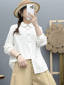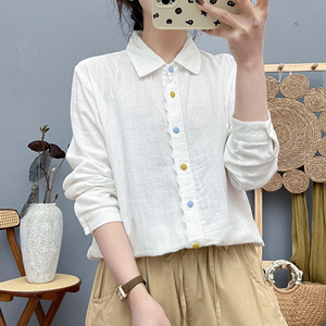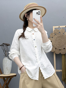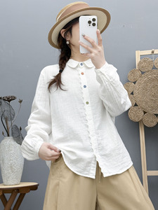 秋装新款 双层棉纱衬衫女简约长袖彩扣文艺百搭女士衬衣 工厂批发