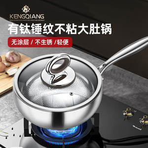 铿锵纯钛大肚锅炒菜锅家用无涂层不粘锅钛炒锅电磁炉锤纹钛小炒锅