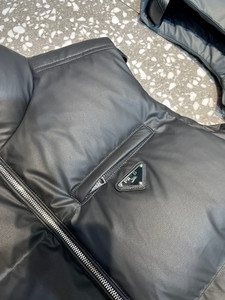 高版本 米兰潮牌P家三角标铁牌皮面加厚羽绒服工装百搭马甲外套