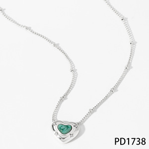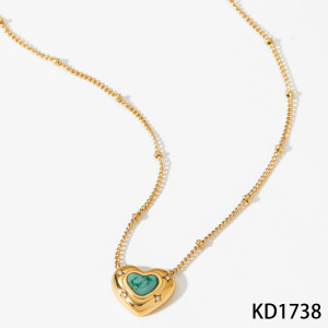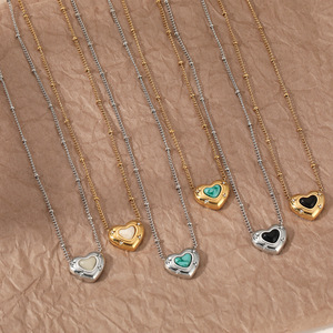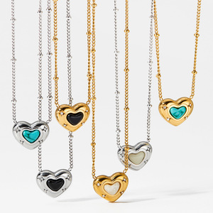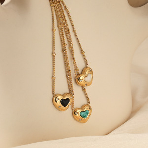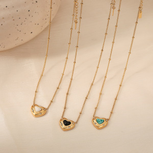 新款韩系316不锈钢复古爱心形天然石项链女 欧美热销电镀饰品批发
