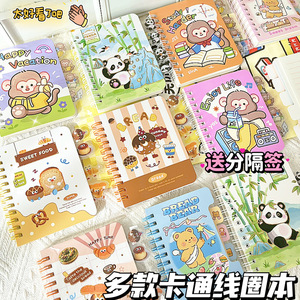 多款卡通A6线圈本学生分隔页笔记本子高颜值可爱熊猫盒装手账本A7