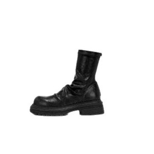 显腿细~厚底增高瘦瘦靴女堆堆褶皱短靴后拉链圆头弹力马丁靴女