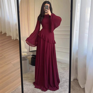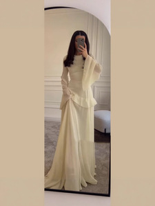跨境外贸批发法式气质高级感收腰显瘦喇叭袖花边装饰纯色连衣裙