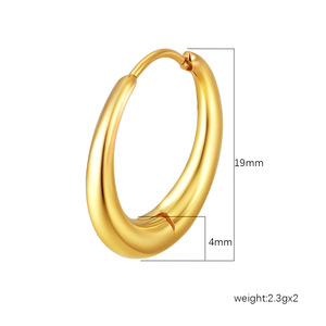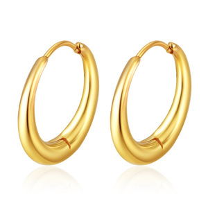 跨境直供圆形不锈钢耳扣女式百搭简约镀18K耳环几何潮流耳饰批发
