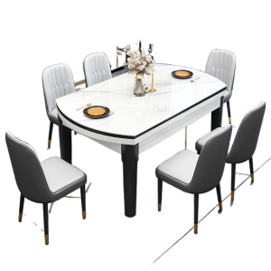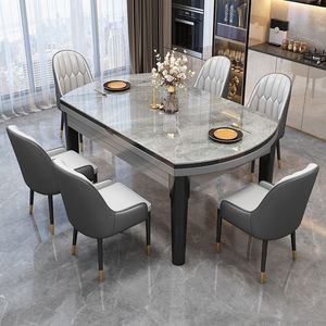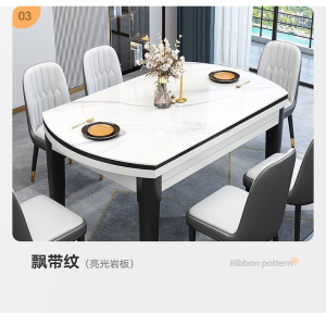 意式亮面岩板餐桌椅组合桌子椅子一套现代简约可伸缩折叠实木圆桌