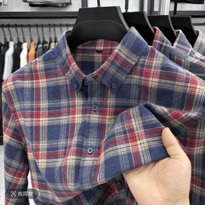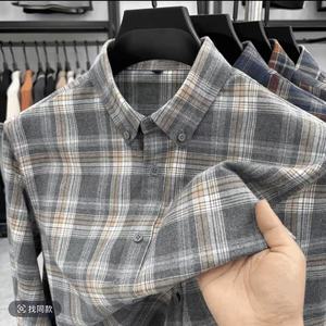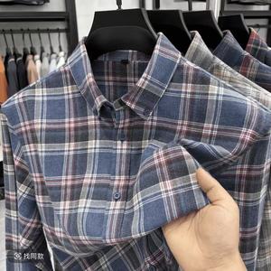 日系清新格子长袖衬衫男士春装休闲上衣青年文艺潮流宽松棉衬衣