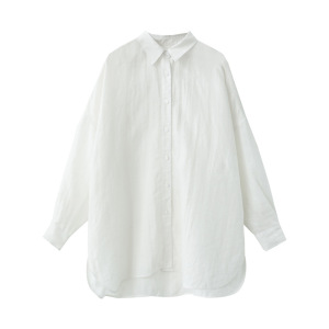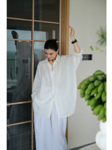 白色21支汉麻长垂坠休闲文艺宽松大廓形衬衫外套薄款防晒衬衣遮肚