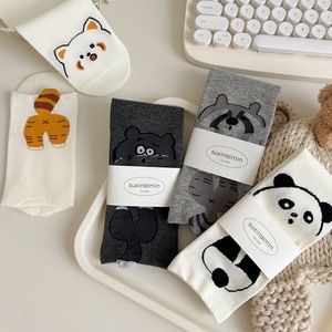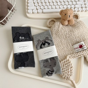 远润家袜子女春秋立体卡通小浣熊可爱抽象搞怪中筒ins潮袜