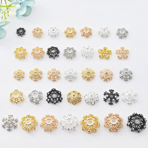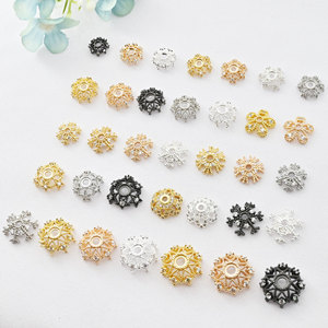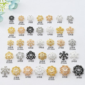 铜镀18k金色枪黑保色镶嵌锆石镂空花托水晶手链花帽diy饰品配件