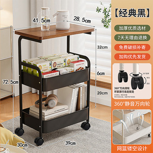 奶油风收纳小推车移动卧室小桌子家用客厅零食置物架多层储物架