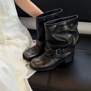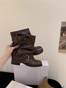 牛皮版!辣妹裤管短靴女褶皱堆堆靴复古英伦风美拉德西部马丁靴