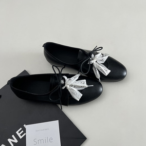 牛皮版~法式双色蕾丝系带圆头乐福鞋小皮鞋女真皮深口平底单鞋女