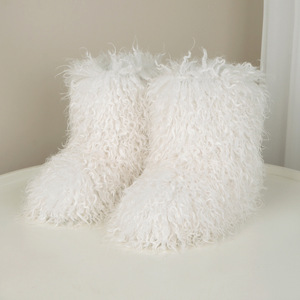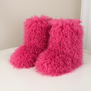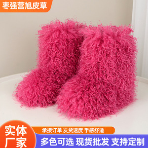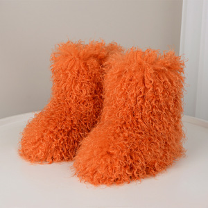 仿羊毛欧美辣妹靴子2024冬时髦朋克保暖加绒雪地靴毛毛靴短筒