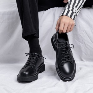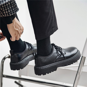 新款皮鞋男韩版潮流百搭帅气鞋子男系带休闲青少年英伦黑色小皮鞋