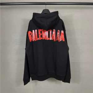 跨境 高品质版本B家25SS新款美纹纸胶带拉浆印花开衫拉链连帽卫衣