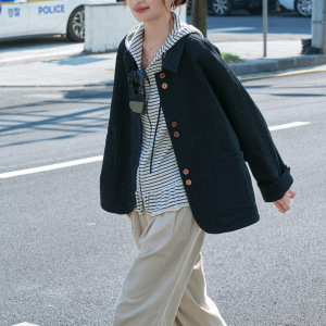 「白描工作间」25AW新品100棉肌理感北欧复古短风衣西装外套秋季
