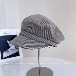 2025日系复古竖条气质八角帽女秋季休闲百搭报童帽气质潮搭鸭舌帽