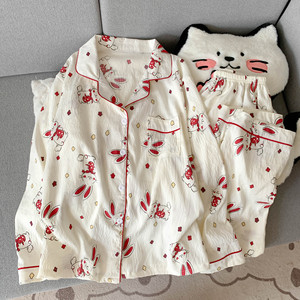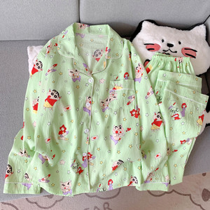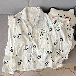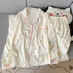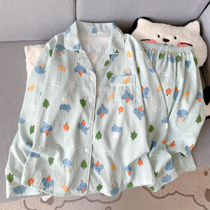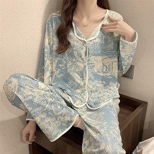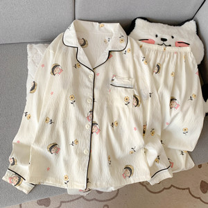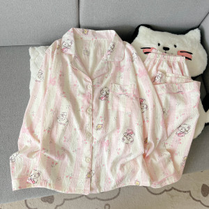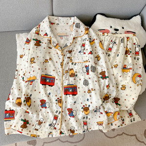 工厂直销云朵棉新款睡衣女长袖长裤开衫翻领卡通大码家居服套装