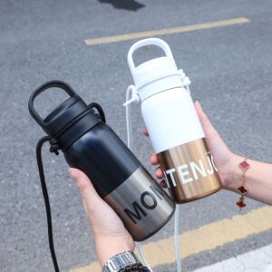 新款户外便携高颜值水杯316不锈钢保温杯一键按压开盖弹跳杯批发