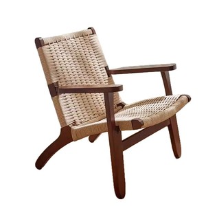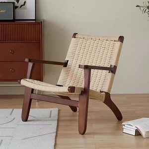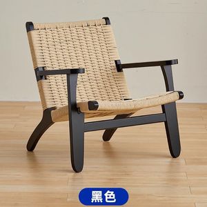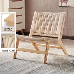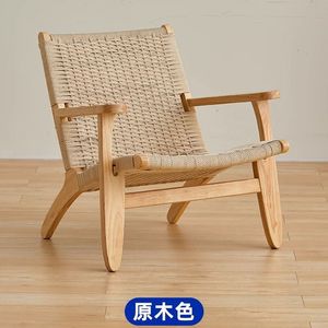 实木绳编实木懒人沙发椅北欧阳台休闲椅子日式侘寂风小户型靠背懒