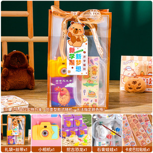 【新年特惠】玩具套餐二(小号)【礼袋+丝带+小相机+挖古恐龙+石膏娃娃+卡皮巴拉贴纸+开学吊牌】