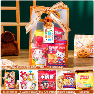 零食套餐二(小号)【不二家吸吸果冻+北海道饼干(袋装)+乐事薯片+贵夫人牛奶糖+礼袋+丝带+开学吊牌